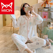 猫人高端品牌 孕妇睡衣夏季薄款莫代尔月子服夏天产后7月份9哺乳家居服女春秋七 莫代尔翻领仙人掌 【提示项】孕妇待产坐月子虚汗多,建议买2套...