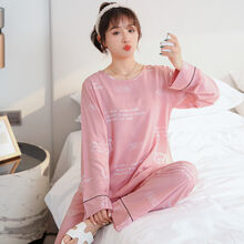 少女生春秋睡衣长袖薄款长裤子初中学生家居服长袖棉绸薄款套装绵绸薄款加大码人造棉女家居服月子服 5138粉字母女>春款春装春秋季日系网红公...