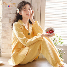 BYLURE品牌睡衣女孕妇春秋款棉质柔软透气长袖月子服产后哺乳家居服 纯色立体花沙黄 S【建议产后100斤左右】
