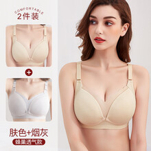 哺乳文胸孕妇内衣怀孕期专用产后女夏季薄款前开扣聚拢防下垂喂奶 【蜂巢透气】肤+灰 75A