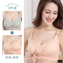哺乳内衣女喂奶前开扣孕妇文胸聚拢防下垂怀孕期专用无痕夏季薄款 灰色+肤色 34/75B