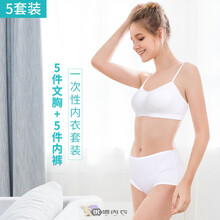 一次性内衣文胸5套一次性内衣套装一次性内裤胸罩出差旅游用品旅行bra【优洒内衣】 5件内裤+5件内衣(简约平行带) M (建议45KG以内 70ABC/75AB)