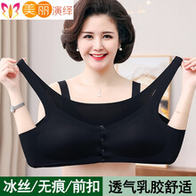 泰国乳胶前扣式内衣妈妈冰丝文胸女无钢圈中老年人背心式中年妇女防下垂收副乳聚拢胸罩夏季 2066-夜空黑- 2XL