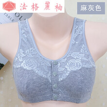 前面扣的无钢圈胸罩女生内衣胸罩前扣无钢圈秋冬奶奶文胸内衣中年妈妈背心式内衣大码薄款 麻灰色【单件】 90