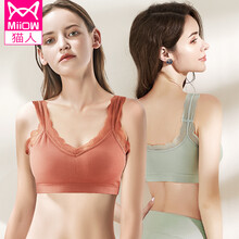 猫人2件装内衣女聚拢美背收副乳调整型胸罩女中厚无钢圈跑步防震防走光睡眠运动文胸 焦糖色+抹茶绿