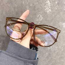 亓米近视眼镜男女可配度数防蓝光防辐射TR圆形眼睛框架女平光镜电脑手机护目镜 茶色 镜框+1.56防蓝光非球面镜片(0-400)