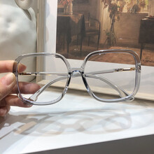 尚佐旬尼 显脸小网红款平面镜眼镜女韩版潮防防蓝光眼镜框大方形男 透明灰 防辐射镜片0度
