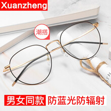 轩正 防蓝光眼镜男女同款平光办公电竞游戏圆框电脑护目镜手机复古潮流眼镜可配近视 黑金 0度防蓝光防辐射