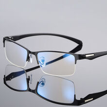 护眼镜 眼镜男半框金属眼镜平光抗电脑护眼 黑色框 平光镜【单个眼镜】