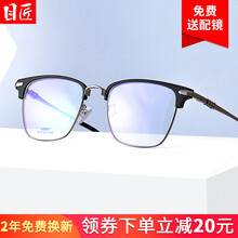 目匠 时尚近视眼镜男女款 防蓝光辐射护目镜复古眼镜框架 205 砂黑枪 防蓝光配镜(1.67防蓝光镜片0-800度)