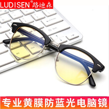 路迪森防辐射眼镜防蓝光电脑镜平光镜男女款近视眼镜框架肖战同款学生电竞玩电脑游戏看手机保护眼睛的眼镜 砂黑框银边 带防辐射防蓝光黄膜镜片...