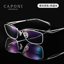 CAPONI变色防蓝光眼镜男商务半框平光护目镜 眼睛近视眼镜框架C2277 枪色-纯钛镜架 配1.67无色防蓝光(0-700度)