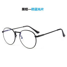 防蓝光近视眼镜男女韩版防辐射平面镜学生护目镜圆框复古平光眼镜 黑色框 防蓝光防辐射无度数【送镜盒镜布】