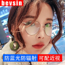 bevsin 防蓝光眼镜男女款变色复古圆形 手机护目镜 可配近视 潮流近视眼镜框架 黑金框+防蓝光+防辐射