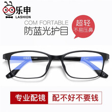 乐申超轻眼镜框男女款近视配眼镜架TR黑色框防电脑辐射防蓝光变色眼睛片 黑色 配1.56防蓝光护目镜片(配0-400度)