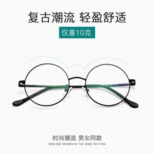 科沃斯 复古圆框眼镜男近视眼镜框女有度数圆形无度数平光韩版潮防辐射蓝光眼镜 大号枪色(含平光防蓝光镜片)