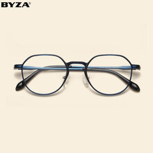 百飒(BYZA)防辐射防蓝光眼镜男女款复古圆形眼镜平光镜 钨钛塑钢眼镜框 可配近视 蓝色 防蓝光平光镜