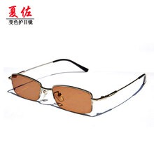 夏佐平光近视变色太阳镜防紫外线抗蓝光电脑护目镜男记忆钛半框眼镜框防紫外线镜片824 银框+变茶片(近视数据留言)