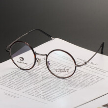 晶工匠天然水晶复古养目镜圆形男东海石头眼镜潮新款可做茶色镜片 48直径 灰色镜框(白色镜片)