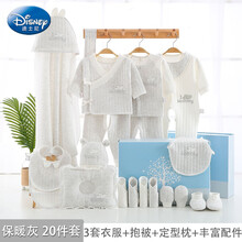 迪士尼【高档轻奢】新生婴儿衣服礼盒套装春秋夏季待产包全套初生刚出生宝宝月子用品送小孩婴儿宝宝礼物 20件套保暖款灰色 59cm(0-4个月)