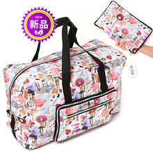 旅行袋大容量手提包可挂拉杆箱上的旅行包可折叠手提行李袋女短途登机包防水旅游包待产包折叠包便携行李包 画画女生可套拉杆箱091款 大