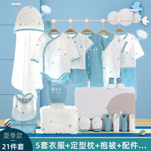 【纯棉21件套】婴儿衣服礼盒套装新生儿衣服四季款满月百天送礼大全亲肤柔软高档满月服待产母婴待产包用品 蓝色夏季款21件套 66CM(4-6个月)
