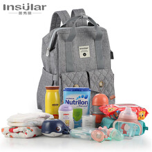 茵秀丽 妈咪包双肩妈妈包宝宝多功能防水母婴包外出妈妈孕妇待产包 烟波灰