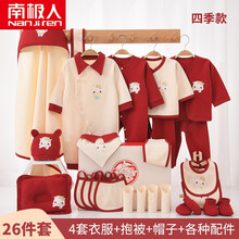 ℘南极人ℑ新品初生婴儿礼盒春夏季纯棉衣服牛年宝宝无骨哈衣母婴用品新生待产包 红色萌牛 薄款26件套 婴儿3-6个月