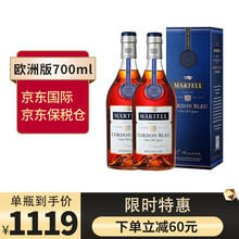 京东国际 【京东保税仓】马爹利蓝带 Martell CordonBleu 洋酒 XO级 白兰地酒 欧洲版 700ml-2瓶装欧美直采,正品保证,京东保税仓直发,全链路海关监管