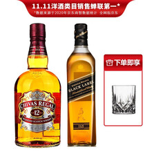 威士忌调配型苏格兰威士忌蓝方黑方威士忌 尊尼获加 黑方700ml+芝华士组合