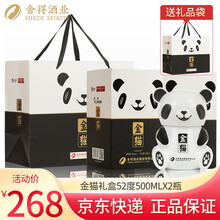 舍得酒业股份有限公司 沱牌舍得金猫酒 熊猫造型酒 高度52度500mlx6瓶整箱浓香型白酒单瓶礼盒装 舍得金猫(2瓶送礼品袋)
