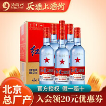 【北京总厂产】红星 白酒 蓝瓶二锅头 绵柔8陈酿 清香型 53度 750ml*6瓶(新老包装随机发)