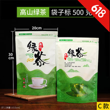 禾意 通用高级绿茶包装袋西湖龙井碧螺春高山茶叶自封250g一斤密封袋子 高山绿茶 C款 500克 100个