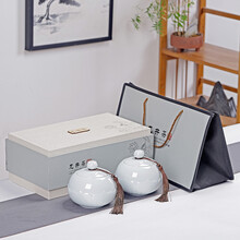 厨量西湖龙井茶叶包装盒空礼盒陶瓷八两装密封罐绿茶送礼储存罐半斤装 龙井礼盒+莲罐(半斤装)