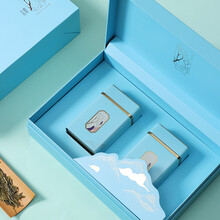 西湖龙井包装盒空礼盒 碧螺春信阳毛尖通用绿茶礼盒包装盒定制 HY-Z1414春歌2合1/蓝