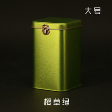 新款空白二两茶叶铁罐通用包装铁盒西湖龙井春茶密封罐 樱草绿大号送内膜带扎丝