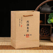 加厚牛皮纸袋茶叶礼品袋西湖龙井茶通用包装手提袋新年纸袋子 西湖龙井 大号21*11*27cm一份10个