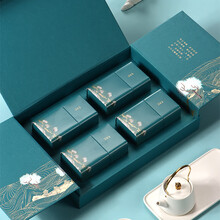 西湖龙井包装盒空礼盒 碧螺春信阳毛尖通用绿茶礼盒包装盒定制 HY-Z013江南说4合1蓝色