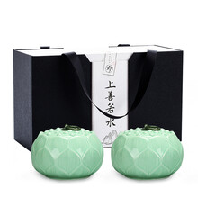 2021新款 西湖龙井礼盒空盒包装盒通用半斤金骏眉大红袍茶叶罐陶瓷礼盒 上善若水-青莲罐