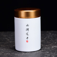 景德镇珐琅彩陶瓷茶叶罐迷你茶盒锡盖密封罐便携随手出差扒花茶罐 白瓷小茶罐(西湖龙井)