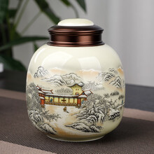 瑾邵西湖龙井装茶叶罐子陶瓷密封罐金属盖红茶绿茶储存茶罐小号景德镇