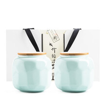 2021新款 西湖龙井礼盒空盒包装盒通用半斤金骏眉大红袍茶叶罐陶瓷礼盒 双罐竹韵清风-蜂巢罐