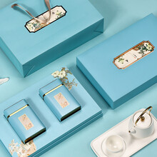 2021新款 西湖龙井礼盒空盒装茶叶礼盒装空盒绿茶包装盒空礼盒茶叶罐包装盒子 春树下2合1浅蓝