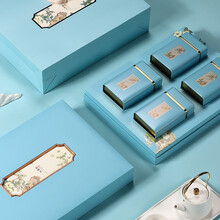 2021新款 西湖龙井礼盒空盒装茶叶礼盒装空盒绿茶包装盒空礼盒茶叶罐包装盒子 春树下4合1浅蓝