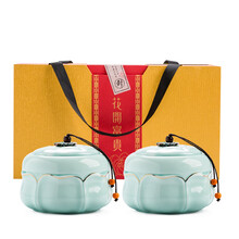 2021新款 西湖龙井礼盒空盒包装盒通用半斤金骏眉大红袍茶叶罐陶瓷礼盒 双罐花开富贵-莲花罐粉青