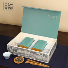西湖龙井空包装盒 2021新款茶叶包装盒空礼盒2罐半斤装西湖龙井碧螺春空盒 清海菘绿二合一