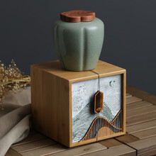 西湖龙井空包装盒 远山茶叶罐陶瓷西湖绿茶龙井茶碧螺春茶叶包装礼盒包装盒空盒 远山单陶