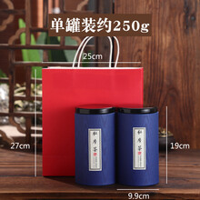 2021新款 西湖龙井礼盒空盒茶叶包装罐储存家用茶包装盒空礼盒定制茶叶盒子空盒 木纹两件套蓝色C款