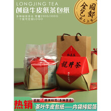 新款西湖龙井牛皮纸包装袋 绿茶叶包装半斤装方包手提袋铝箔内袋 手提袋空白版 250g(半斤装)