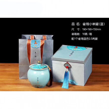 2021新品茶叶包装盒空礼盒新款雀翎茶叶包装西湖龙井绿茶通用陶瓷罐茶叶包装空礼盒 雀翎单罐(蓝色)